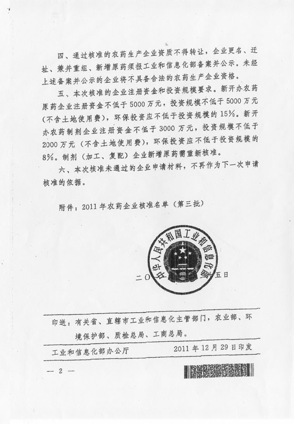 32072402010026號手機(jī):15861606228 13906163369 傳真:0510-86515558 公司地址:江蘇連云港灌南縣堆溝港鎮(zhèn)(化學(xué)工業(yè)園) Copyright © 2012 nlchemicals.com All Rights Reserved. 專業(yè)生產(chǎn)滅多威,硫雙威 |